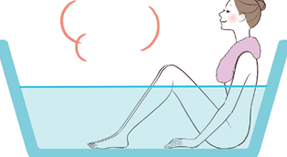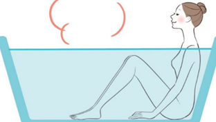 Immerse yourself up to just above the abdomen. Half-body bathing is crucial for safe bathing, especially recommended for individuals with heart or lung conditions.