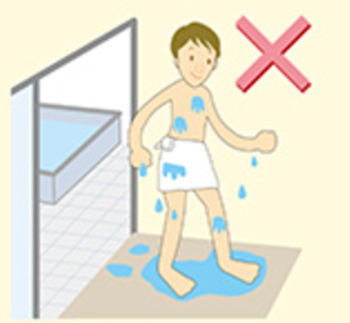 Wipe your body when returning to the changing room. Be careful not to walk around the changing room while wet, as it can make the floor slippery and inconvenience others.