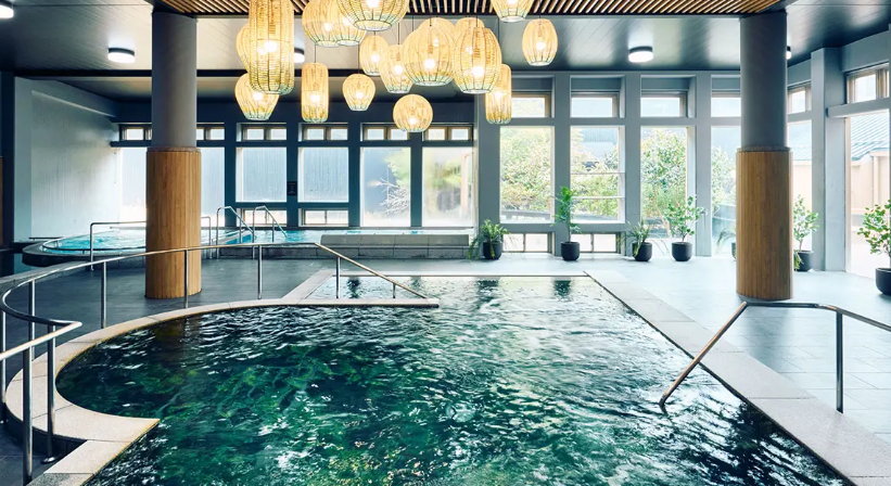 Inside, the facility offers a high-concentration carbonated bath, which helps promote blood circulation.