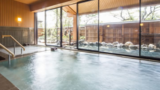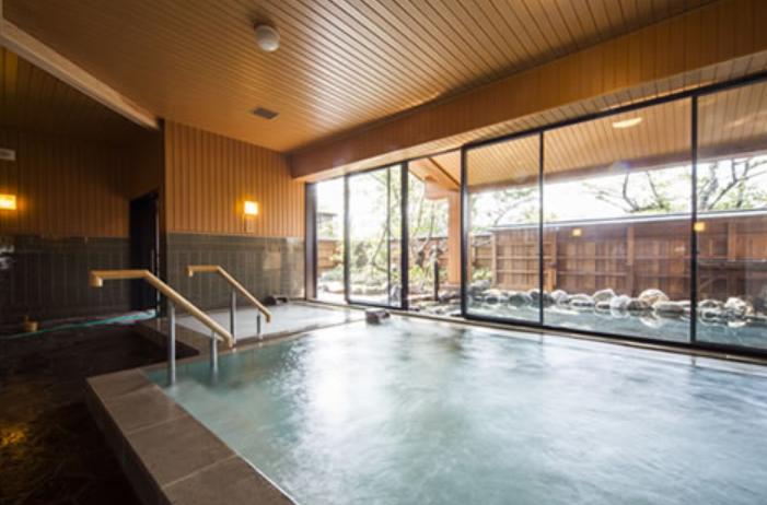 The open-air bath is spacious and garden-like, allowing guests to enjoy the onsen with all five senses.