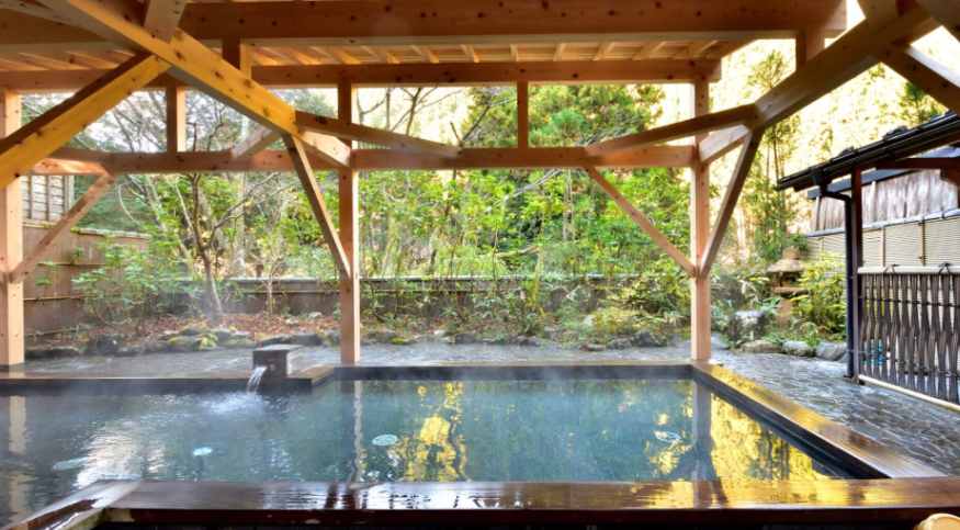 Visitors can enjoy a traditional Japanese hot-spring experience while surrounded by nature.