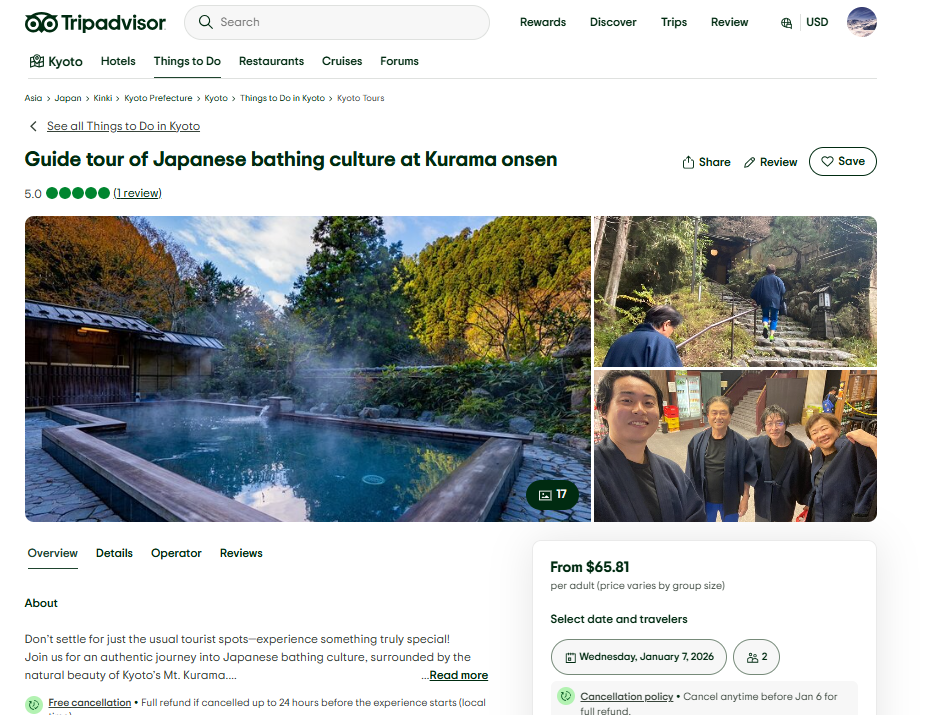 This guided tour offers a deeper experience of Japanese hot spring culture that goes beyond simply visiting famous tourist spots. Surrounded by the rich natural scenery of Kurama, you will discover the values and traditions that Japanese people have cherished for generations.