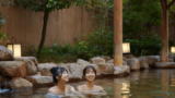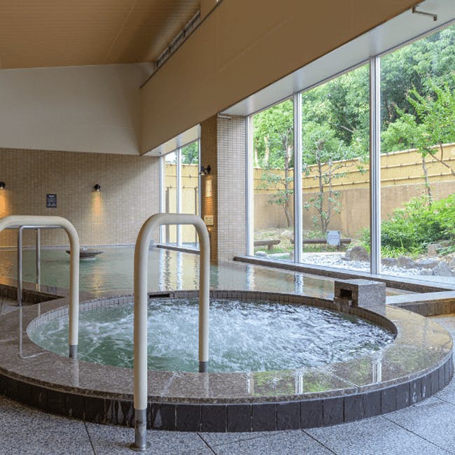 At Takenosato Onsen Manyo-no-Yu in Kyoto, you can enjoy two different outdoor baths, each with a distinct type of hot spring water. The spacious open-air baths are filled with abundant natural hot spring water, offering deep relaxation and relief from daily fatigue.